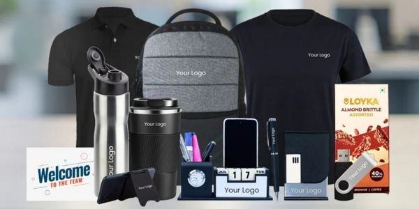 Premium corporate gifts including pens, diaries, bags, and customized merchandise.